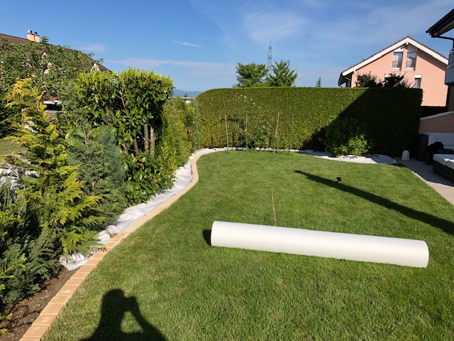 Aménagements de massifs Aménagements de massifs soit : mise en place d’un géotextile – mise en place de gravier – pose de pavé pour délimitation Lieu : Cugy