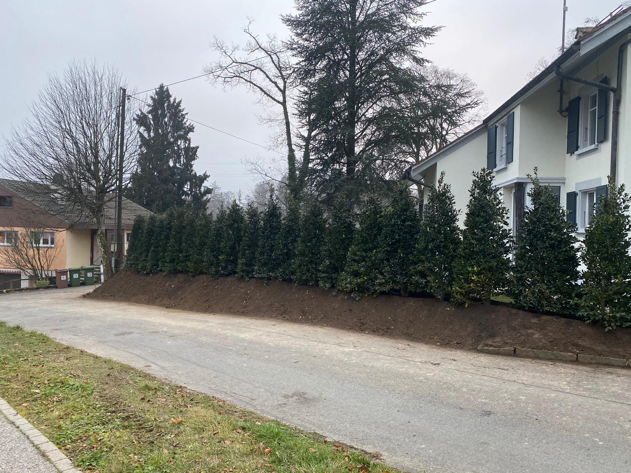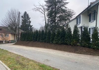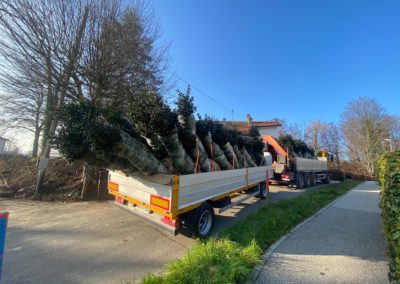 Plantation d’une haie de Houx Plantation d’une haie de Houx Travaux exécutés : Arrachage ancienne haie de charmille / Déchargement des nouvelles plantes au camion grue / plantation de 100 Houx à la pelle mécanique Durée : 1 semaine Lieu : Epalinges