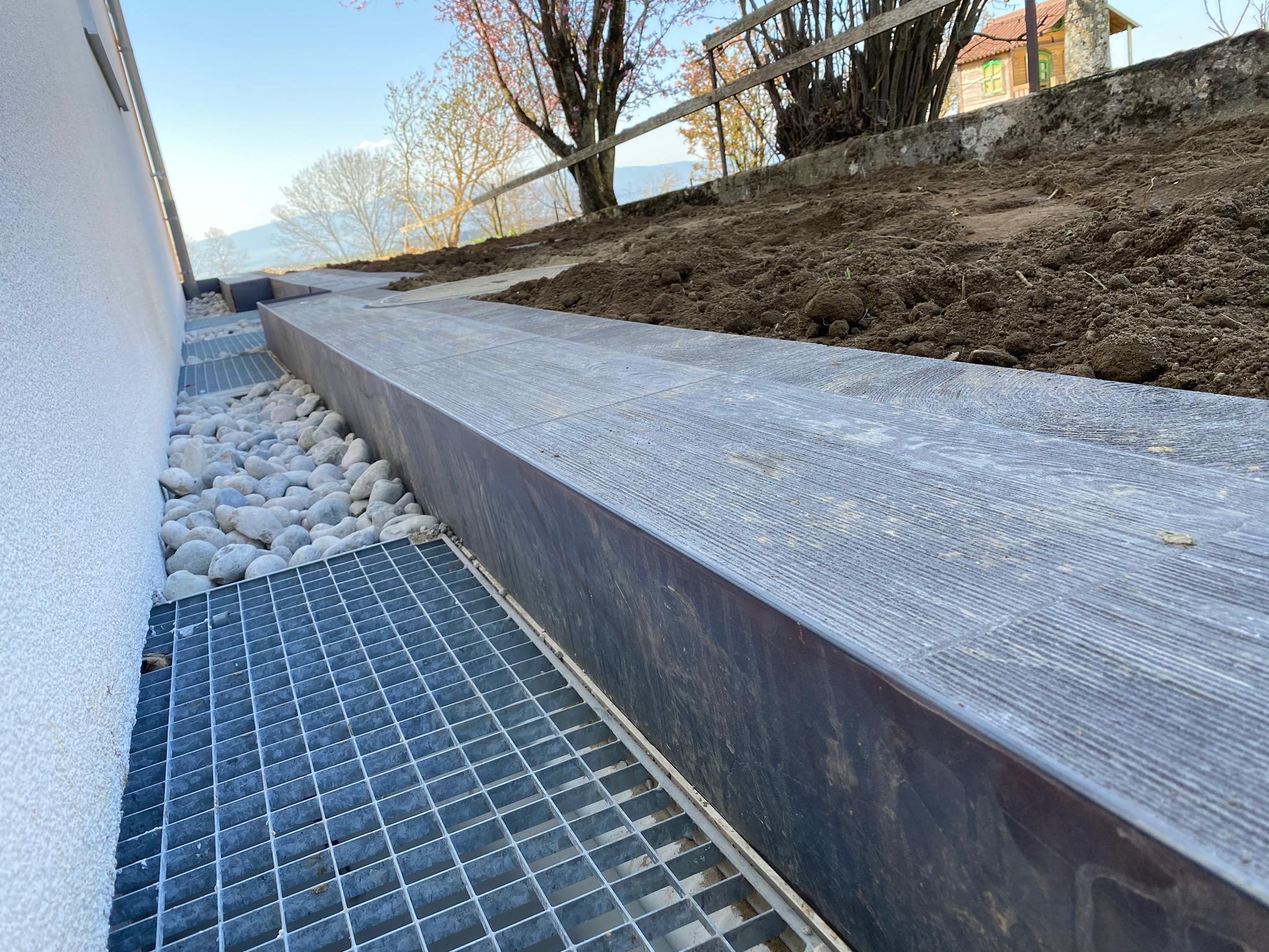 Aménagements extérieurs 1 immeuble Aménagements extérieurs complet d’un immeuble de 4 appartements. Pose de : Terrasses / cheminements / Gazon Plantations diverses. Lieu : Poliez-le-Grand